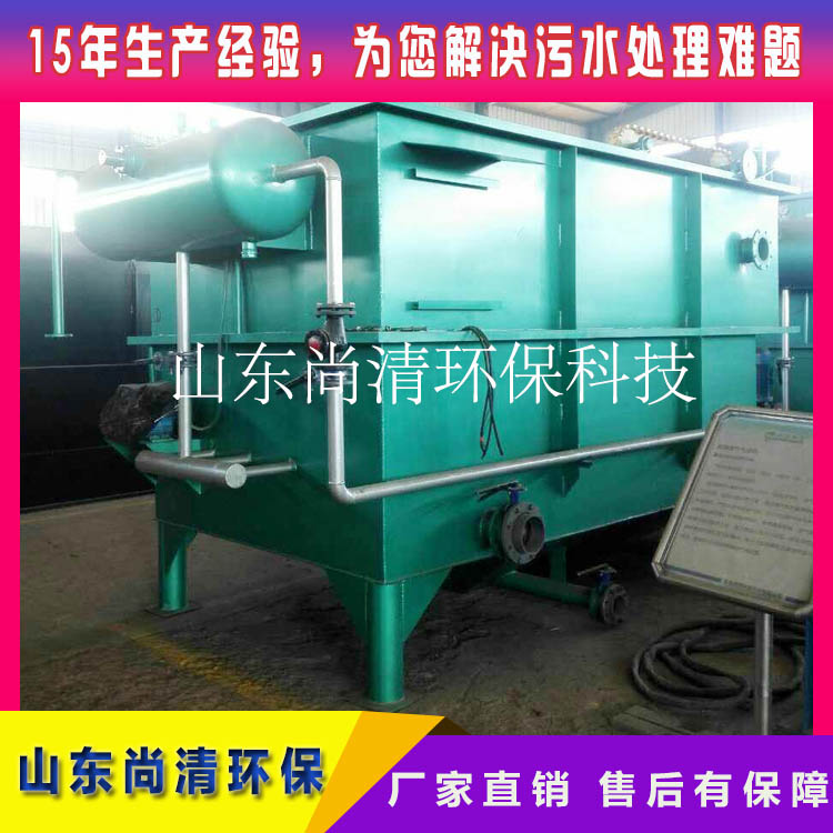 將生產(chǎn)廢水排入生產(chǎn)廢水池,與預(yù)處理后的高濃廢水在生產(chǎn)廢水池混合。經(jīng)曝氣調(diào)節(jié)后通過潛污泵提升至混凝反應(yīng)槽,投加酸或堿調(diào)到最佳PH值,依次在相應(yīng)反應(yīng)槽加入破乳劑、PAC、PAM,利用機(jī)械攪拌混合均勻,使廢水中的細(xì)小懸浮物和膠體形成顆粒較大絮凝體,然后在沉淀池內(nèi)進(jìn)行固液分離,沉淀池采用去除率高、占地面積小、不易堵塞、不用反沖洗的豎流式沉淀池。沉淀池內(nèi)上清液自流進(jìn)入溶氣氣浮機(jī),加入絮凝劑和助凝劑,并進(jìn)行攪拌,利用該系統(tǒng)內(nèi)不斷上升的細(xì)小氣泡黏附粒較小的油珠及懸浮物從而浮升至水面形成浮渣,利用刮渣系統(tǒng)將其刮除,氣浮渣重力進(jìn)入污泥池中。